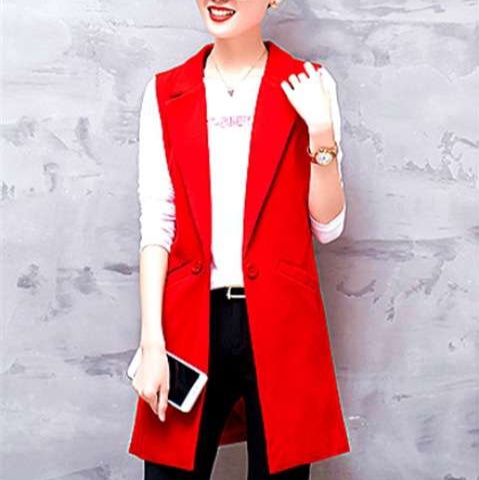 レディース向けクラシカルロングテーラードジレ