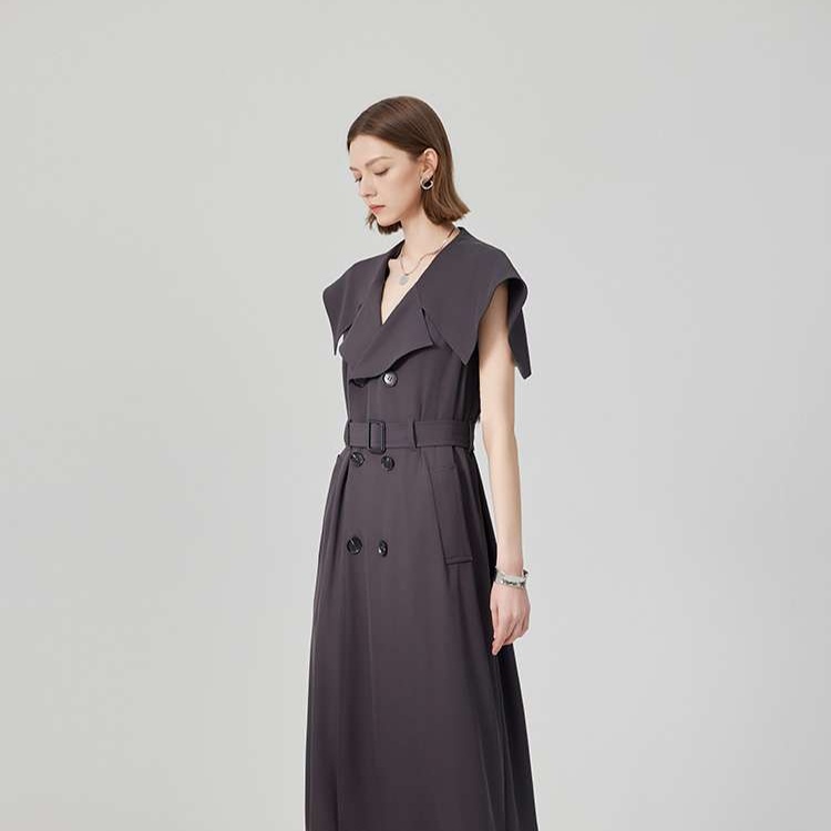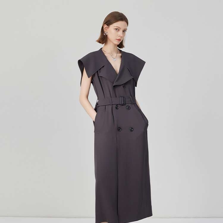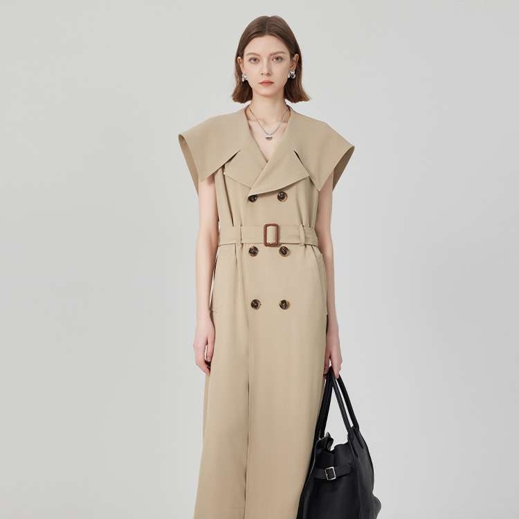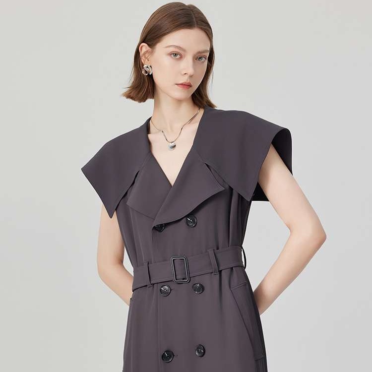 洗練されたジレデザインが魅力のトレンチワンピース。ドラマティックな襟元が女性らしさを引き立て、スタイリッシュな印象を与える一着。軽やかな素材感で着心地も良く、デイリーから特別な日まで幅広く活躍。シンプルなアクセサリーと合わせて、自分らしいスタイルを楽しむことができる。新たなコーディネートの主役にぴったりのアイテム。