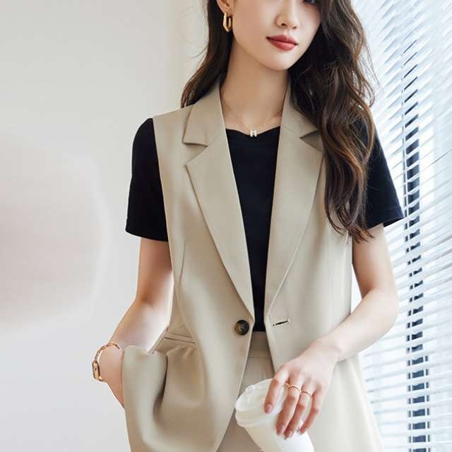 上質な生地を使用したジレスタイルのスーツ。オーバーサイズのベストが洗練されたシルエットを生み出し、テーパードパンツとの組み合わせでバランスの取れた印象を与えます。ビジネスシーンや特別なイベントに最適な一着で、エレガントさと快適さを兼ね備えています。自信を持って着こなせるスタイルを提案します。