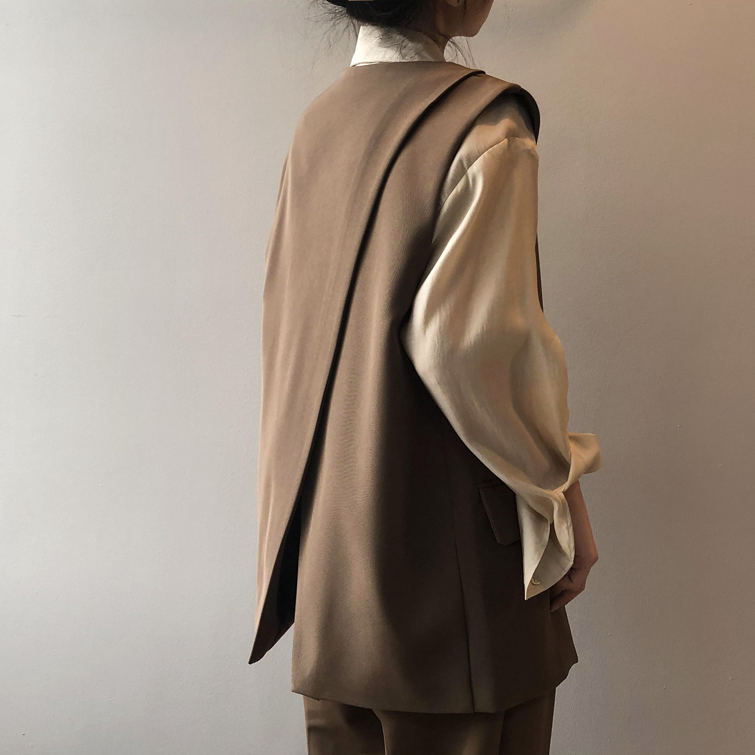 どんなコーディネートにも合わせやすく、様々な場面で活躍するジレです。 ゆったりとしたシルエットで体型カバー効果もあり、程よいリラックス感を演出。 大人の上品なエレガントスタイルを叶えてくれる一枚です。