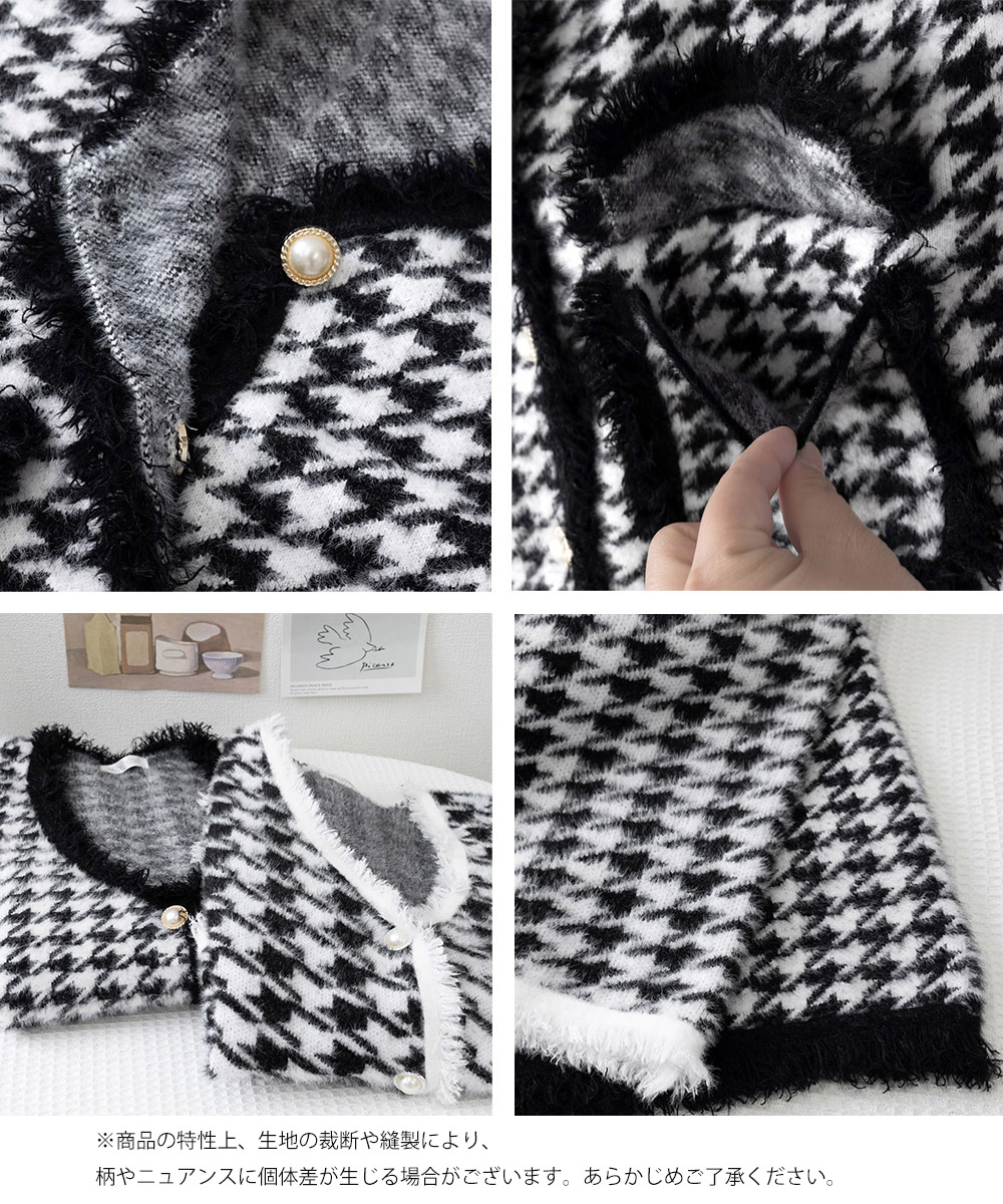 素材:アクリル58%+ポリエステル42% カラー:ブラック/ホワイト サイズ:ワンサイズ 着丈:約67cm 肩幅:約38cm 身幅:約52cm 胸囲:約104-120cm 裏地:なし 伸縮性:なし 透け感:なし ※すべて平置きサイズです(採寸方法違いより、多少の誤差がございますので、ご了承ください)。