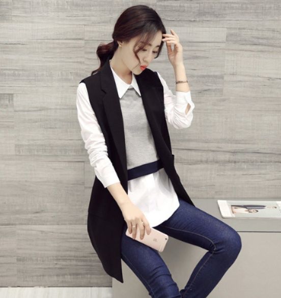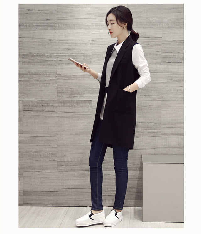 きちんと感のあるテーラード襟が特徴のロングジレです。
